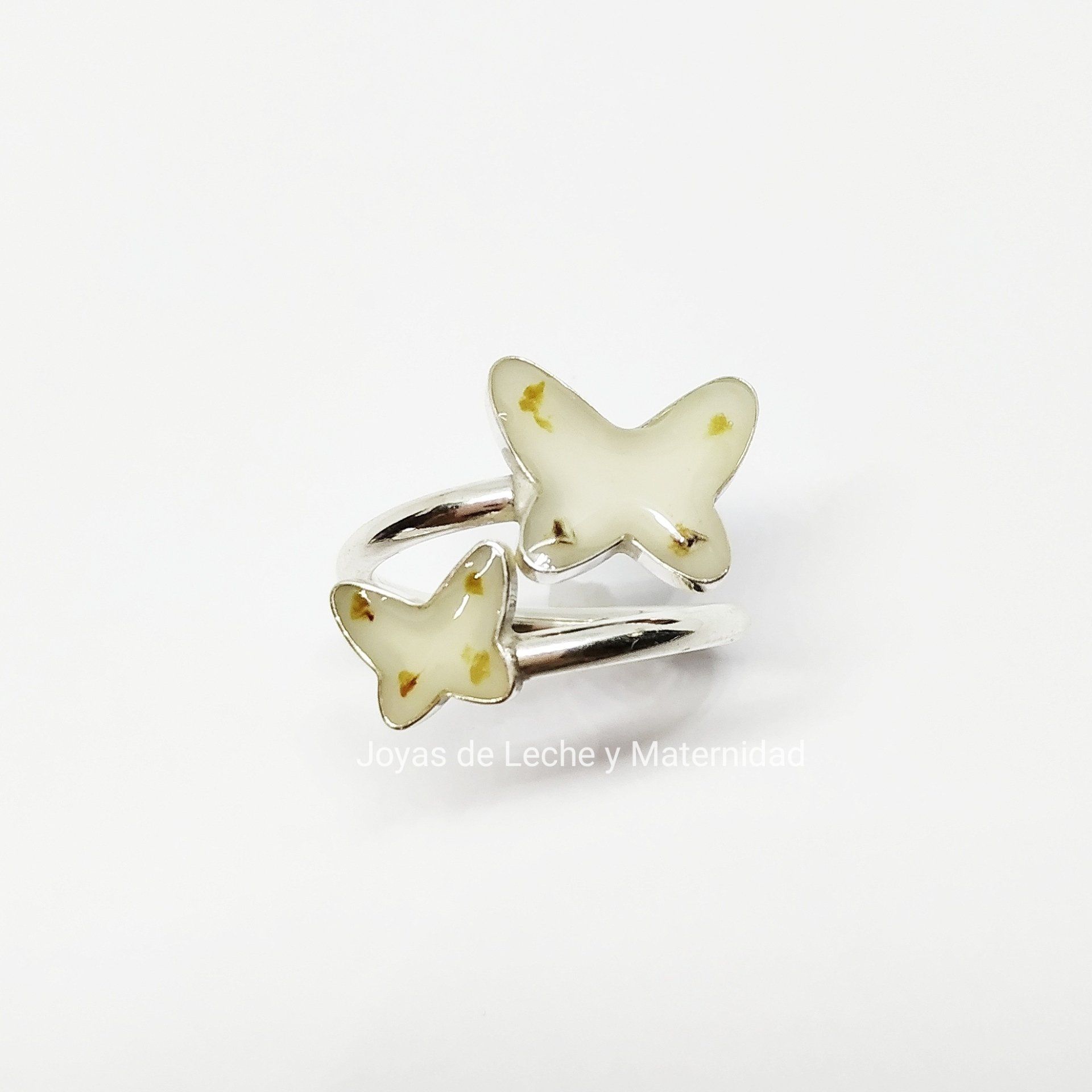 Posibilidad de leche materna en los dos huecos, o cristal de Swarovski blanco en la mariposa pequeña.