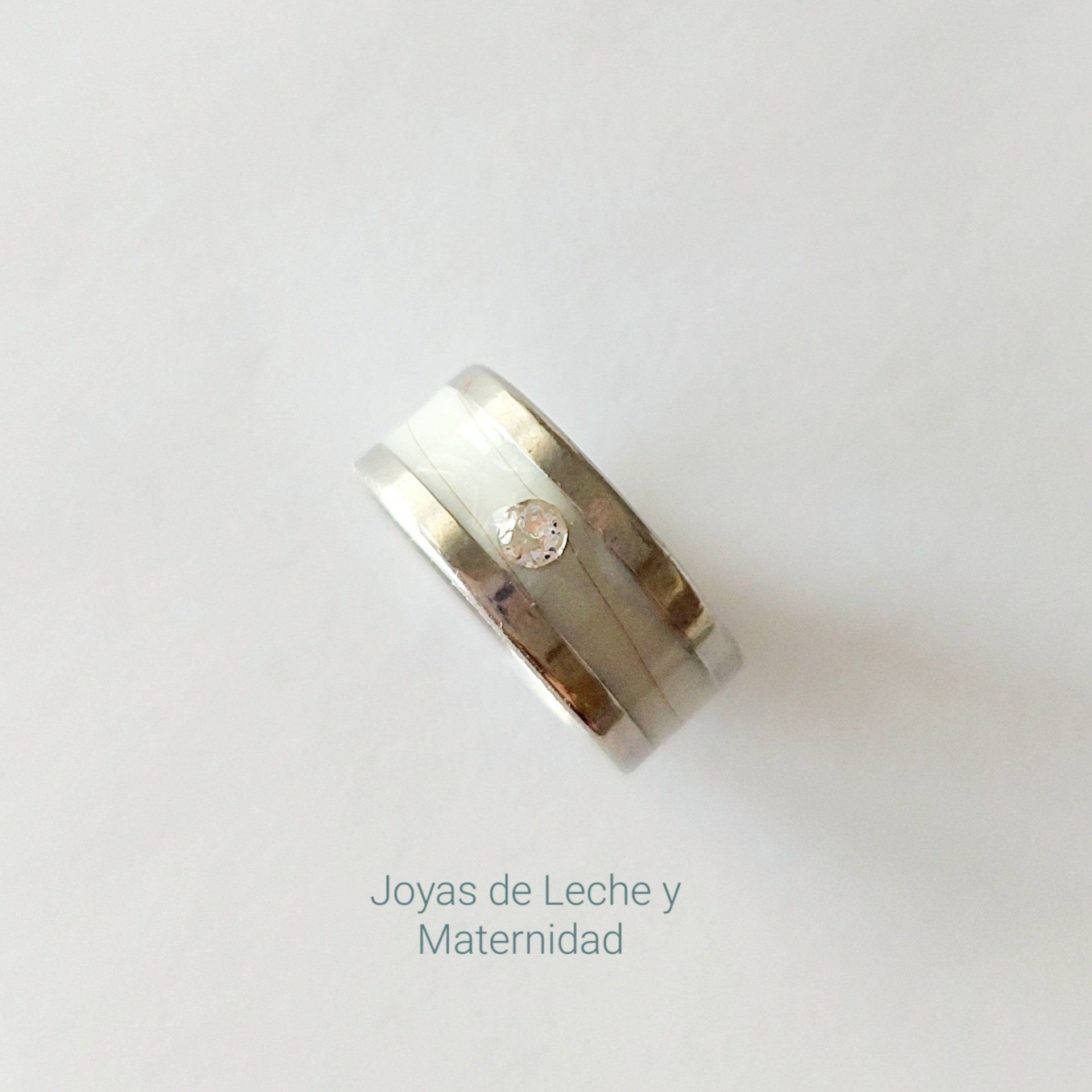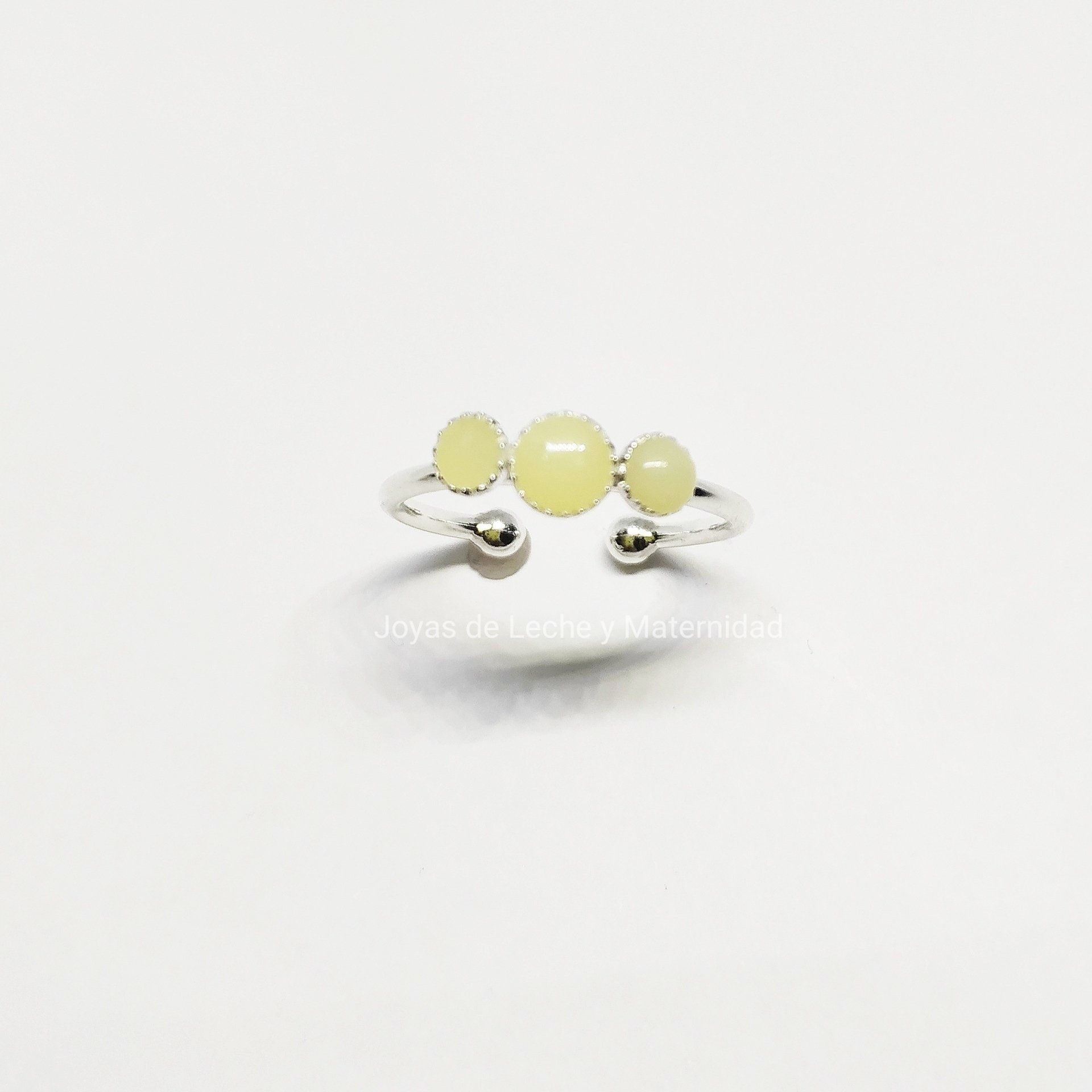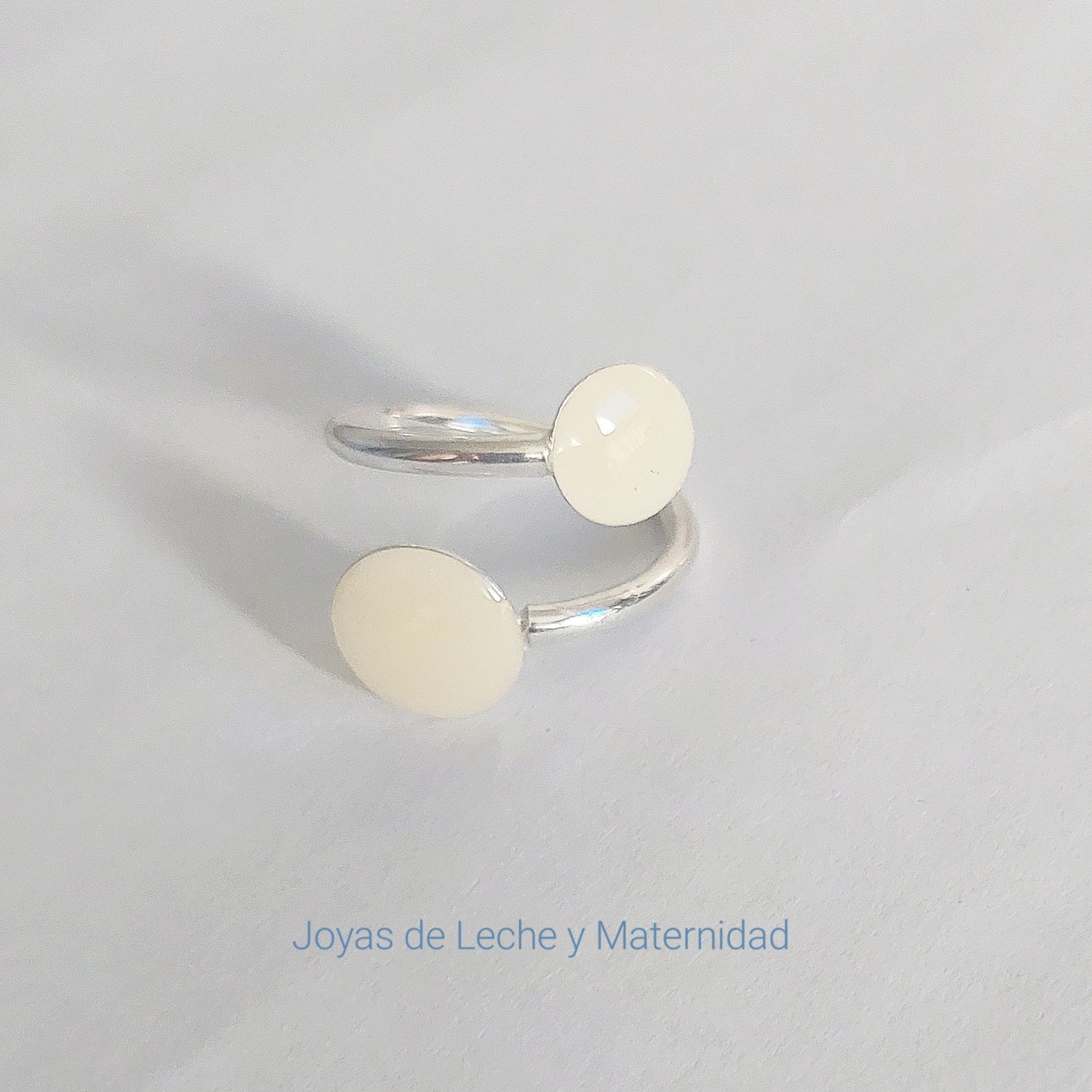 3 discretas gotitas de leche materna de 3 y 4mm, anillo en medida regulable, y en Plata de Primera Ley 925.