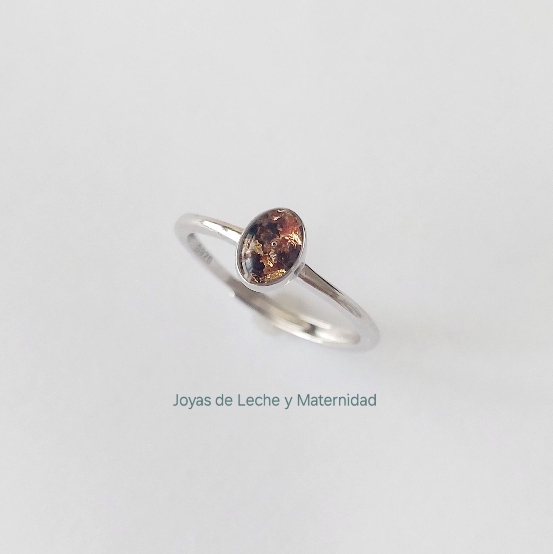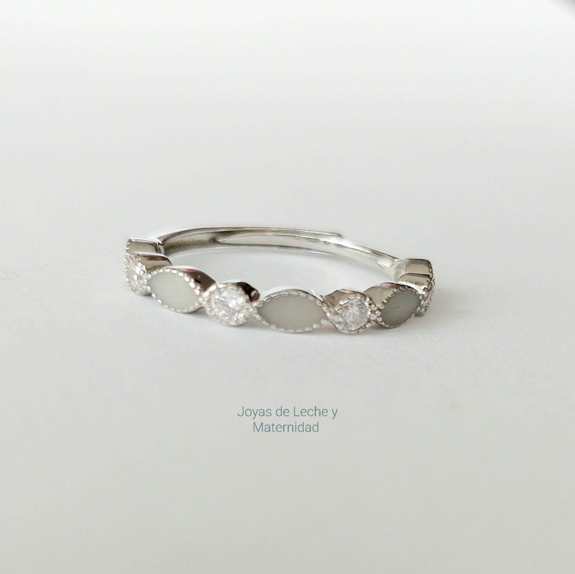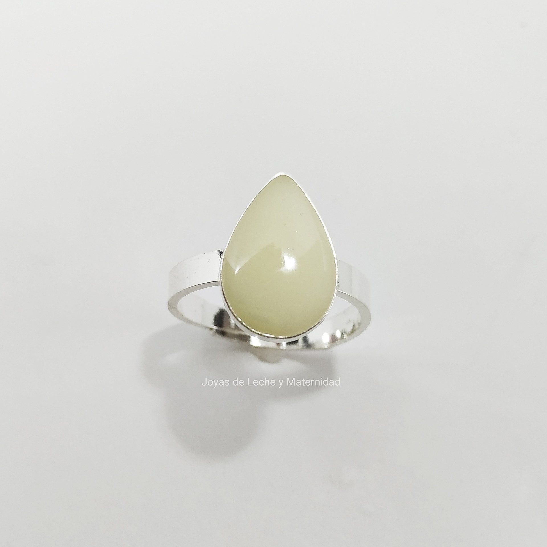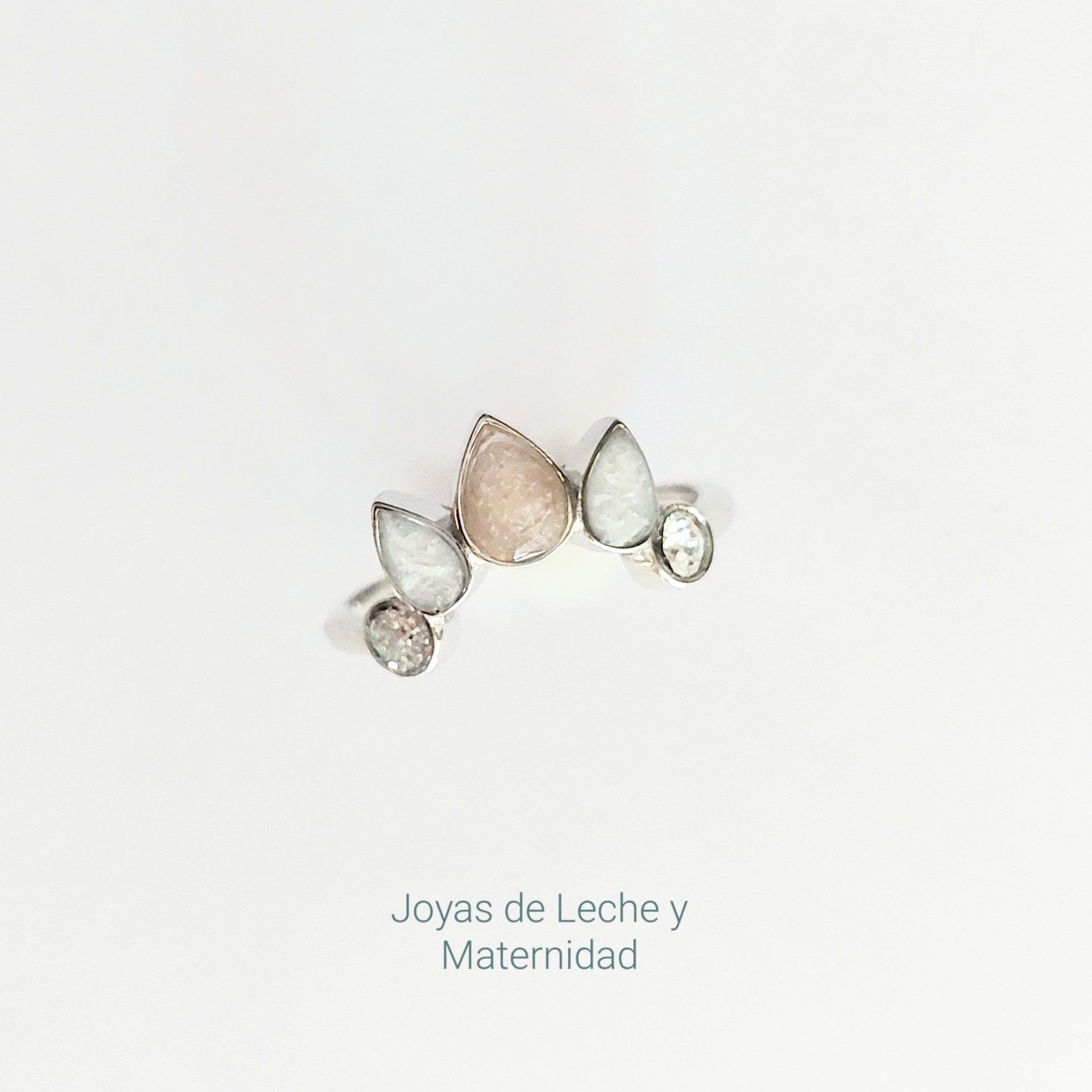Anillo de talla ajustable, en Plata de Primera Ley 925, con gotita para poder preservar leche materna.