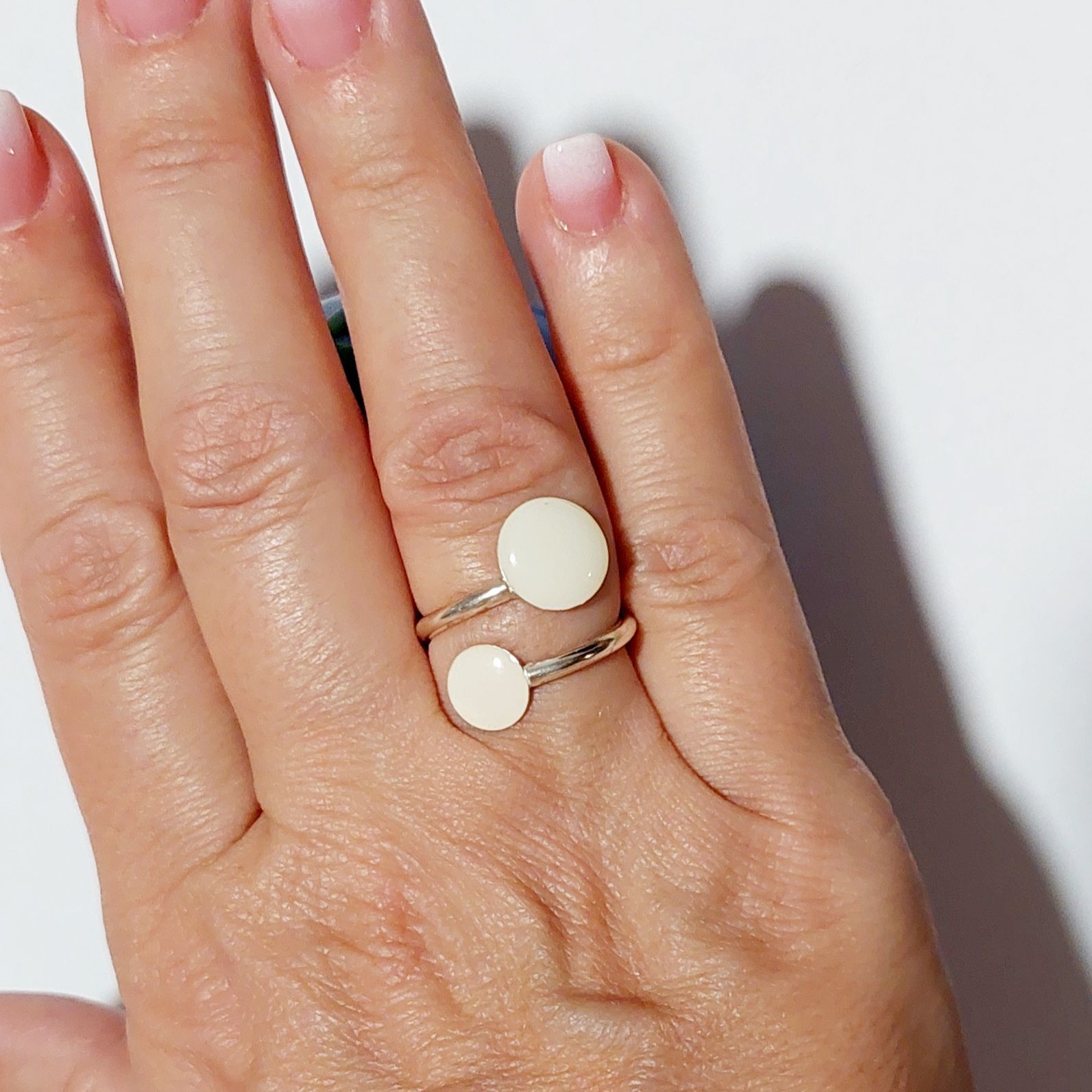 Anillo de talla ajustable con dos gotas de 9x13mm cada una, y Plata de Primera Ley 925, es quizá el modelo que mejor refleja las gotas de leche materna.