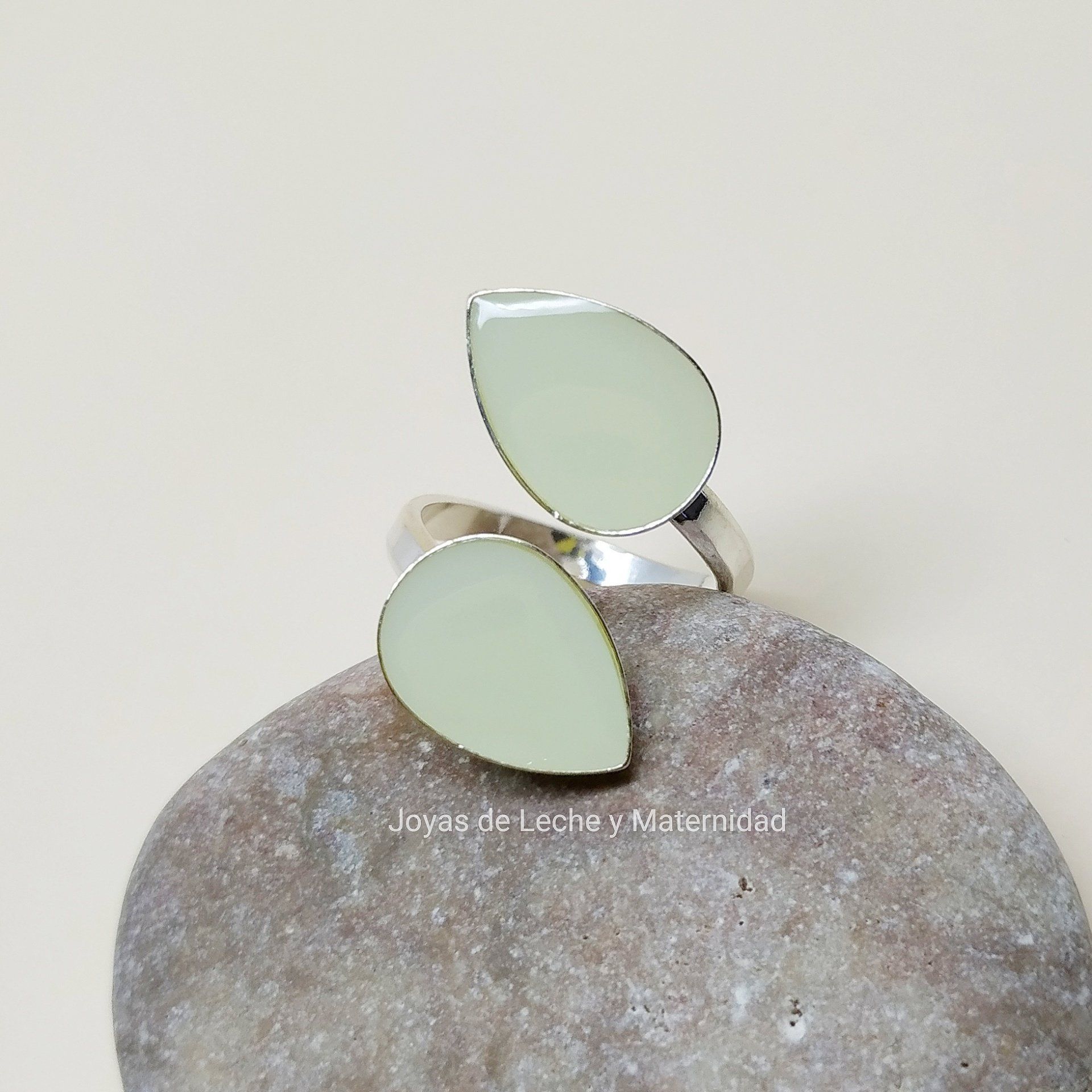 Anillo de talla ajustable con dos gota de 9x13mm , y Plata de Primera Ley 925, es quizá el modelo que mejor refleja las gotas de leche materna.