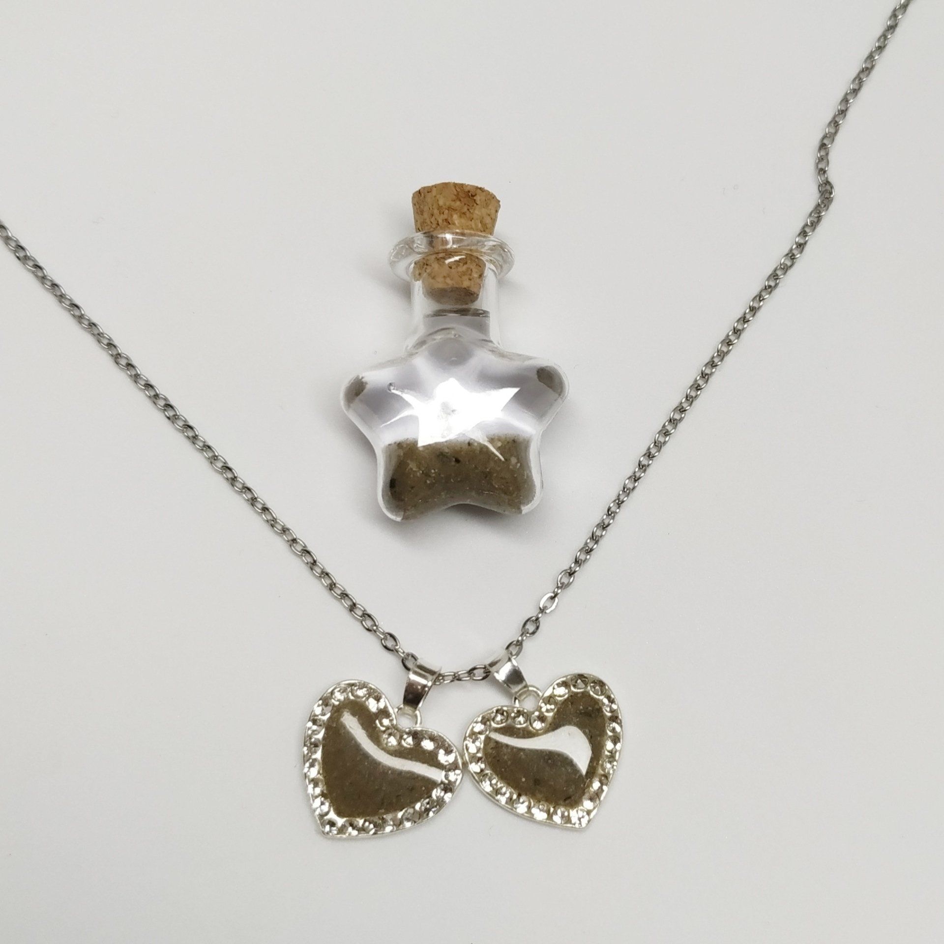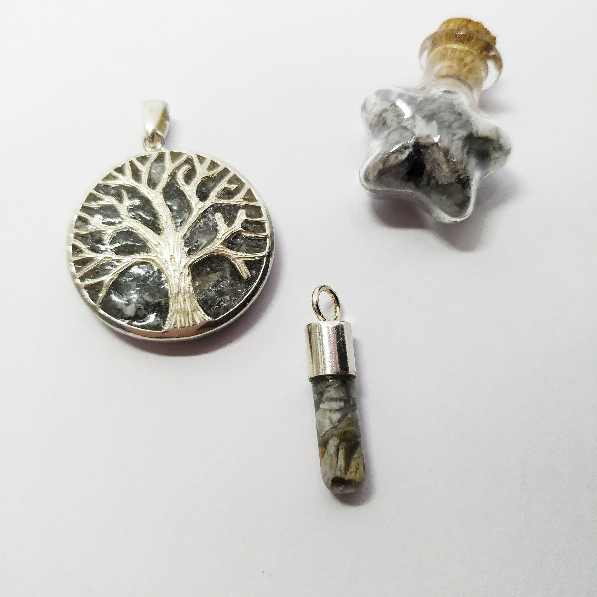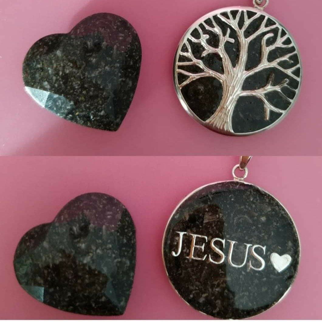Tratamos estas piezas desde el máximo respeto y un profundo cariño, no se deshecha nada de la muestra procesada, lo que quede después de haber realizado la pieza lo recibiréis encapsulado en un corazón o estrella.
